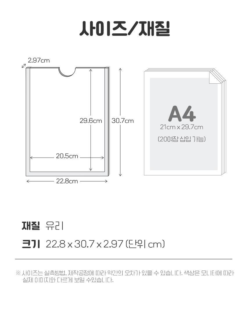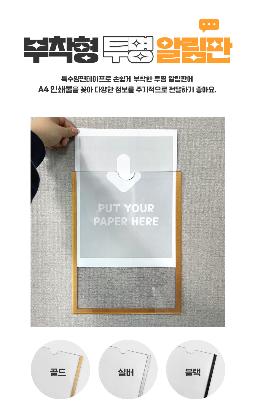 | 제품명 | 부착형 유리 투명 알림판 A4 |