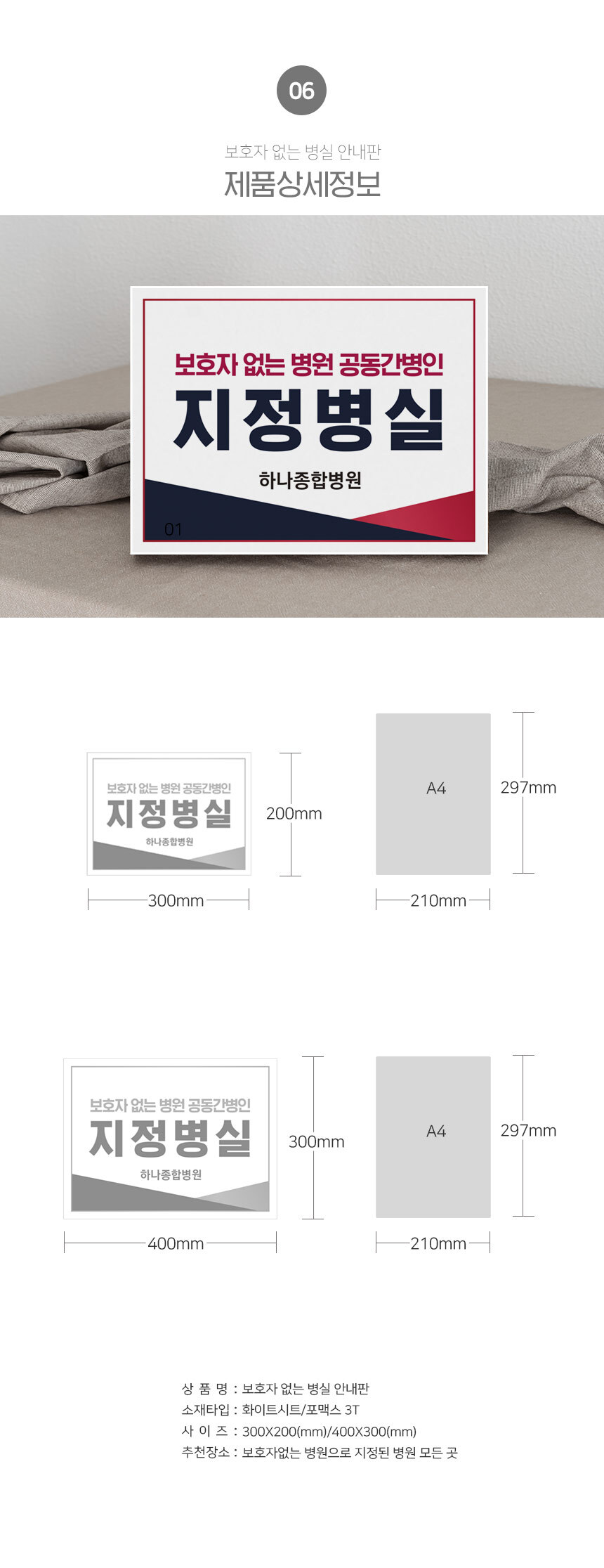 | 제품명 | 보호자 없는 병실 안내판 |