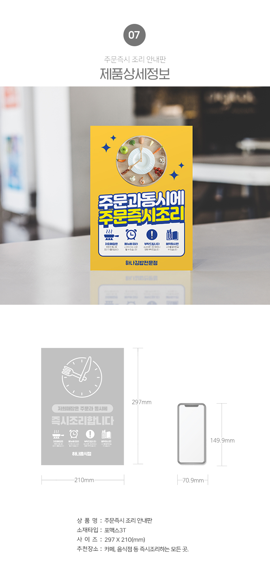 | 제품명 | 주문 즉시 조리 안내판 |