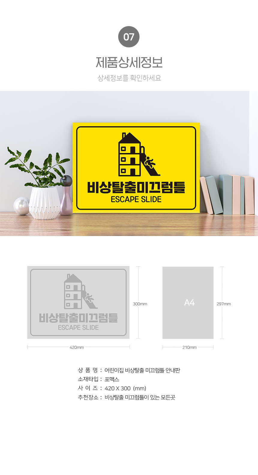 | 제품명 | 어린이집 비상탈출 미끄럼틀 안내판 |