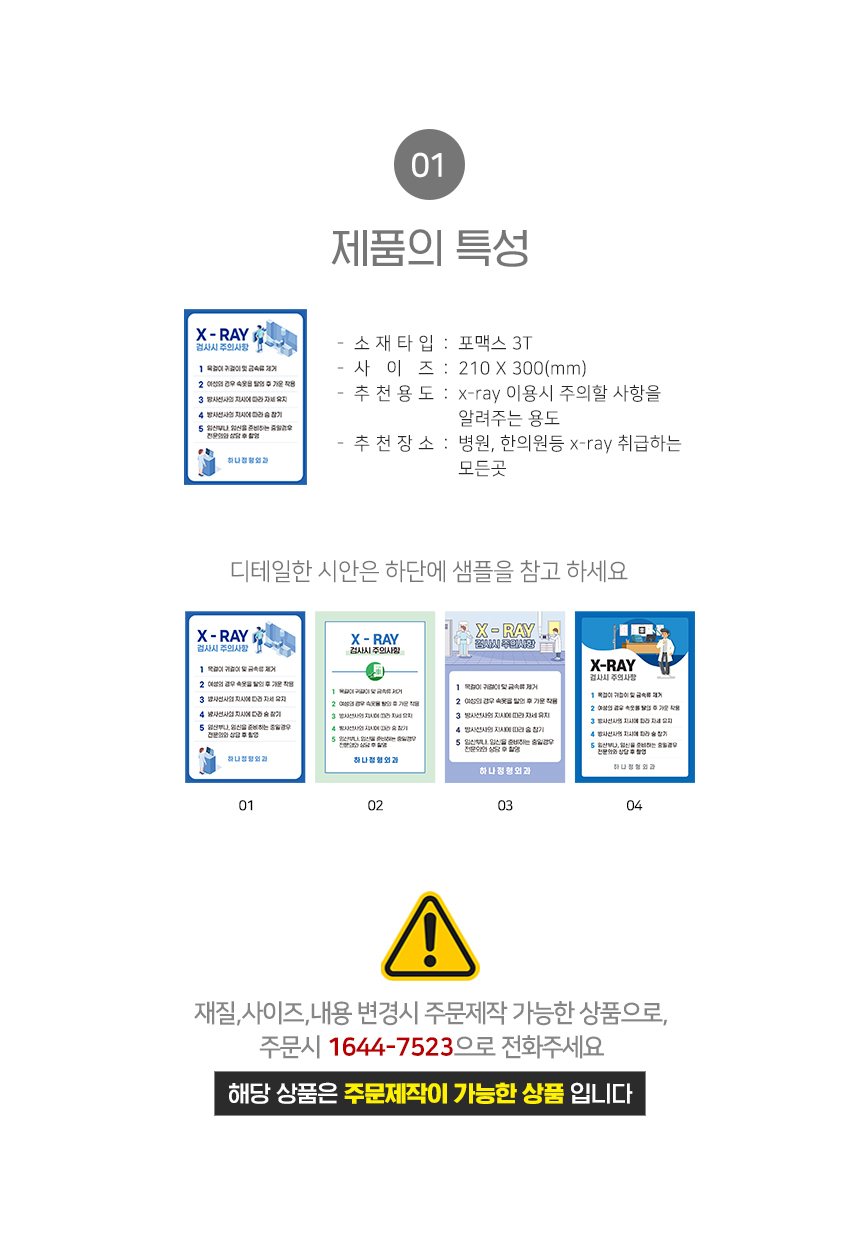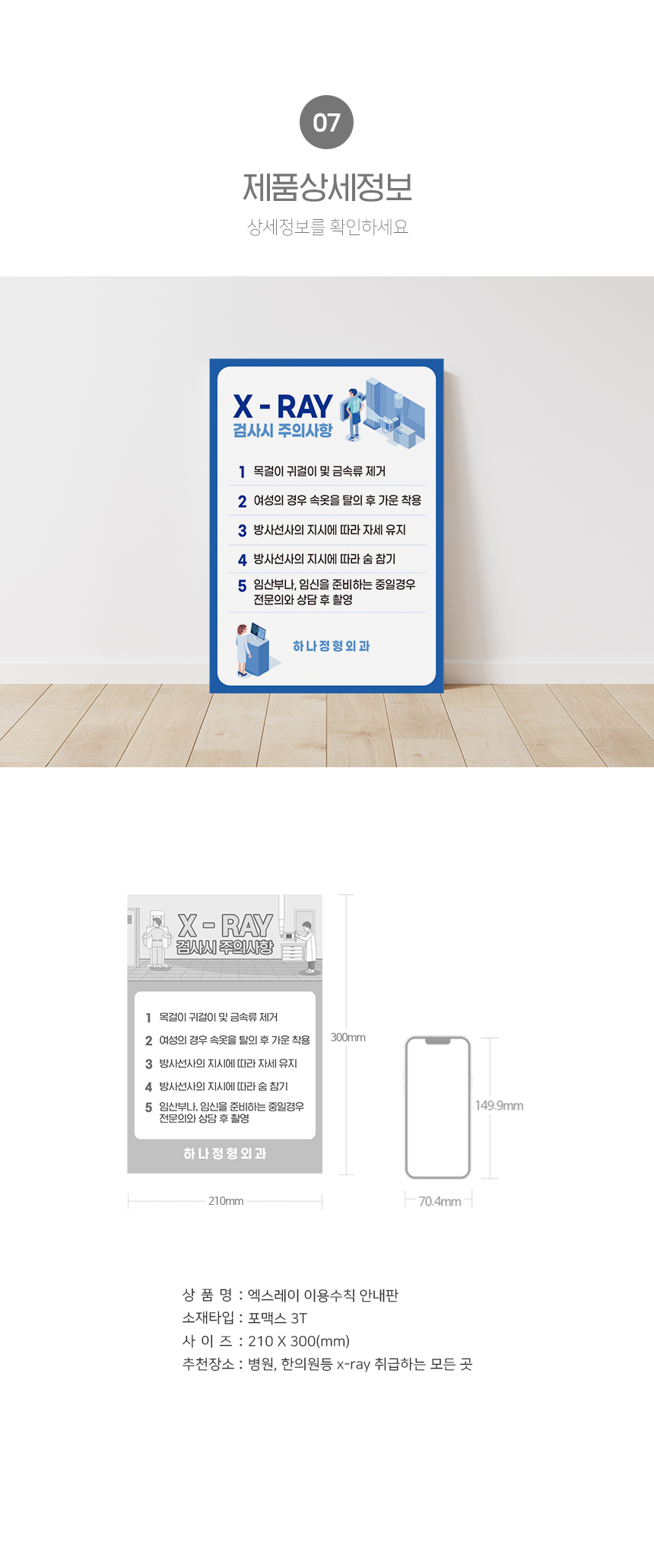 | 제품명 | 엑스레이 이용시 주의사항 안내판 |