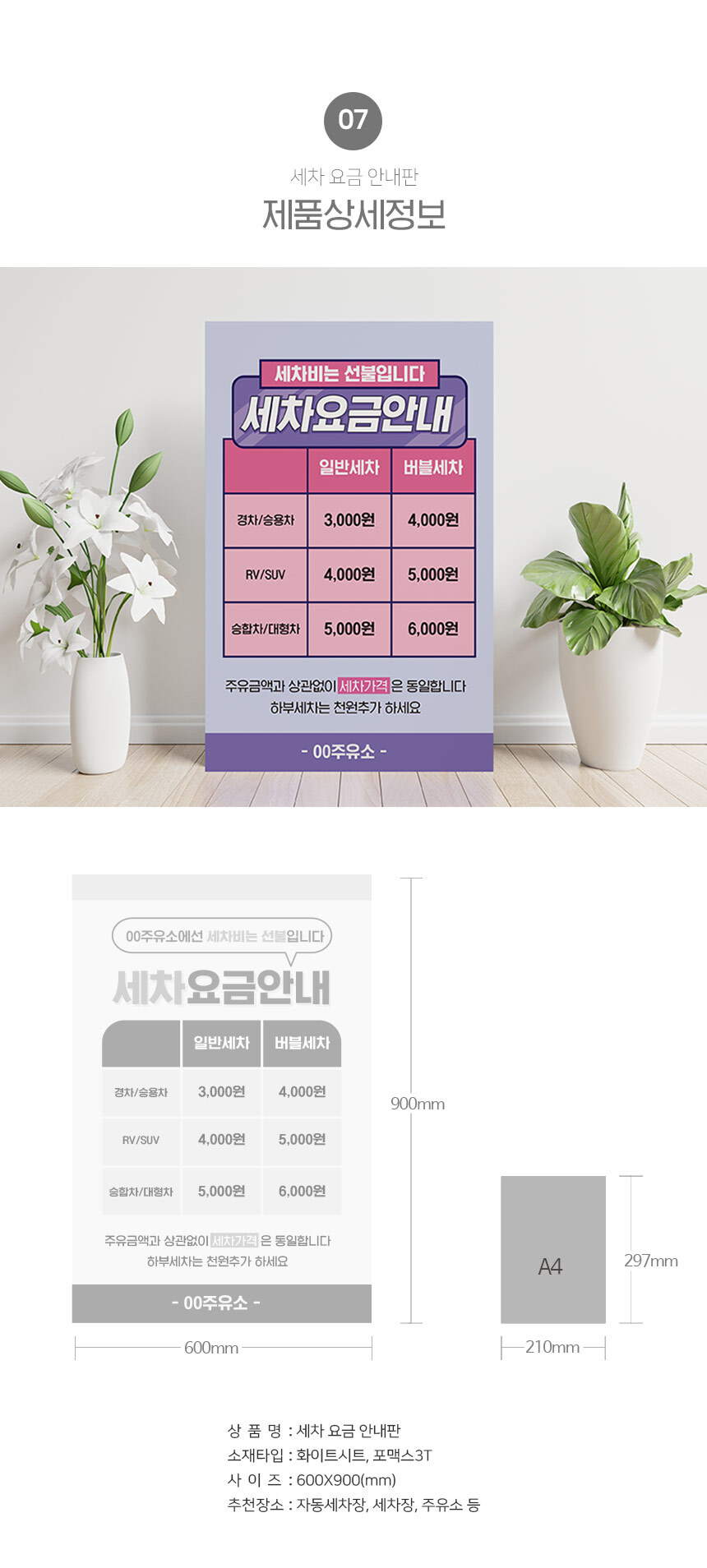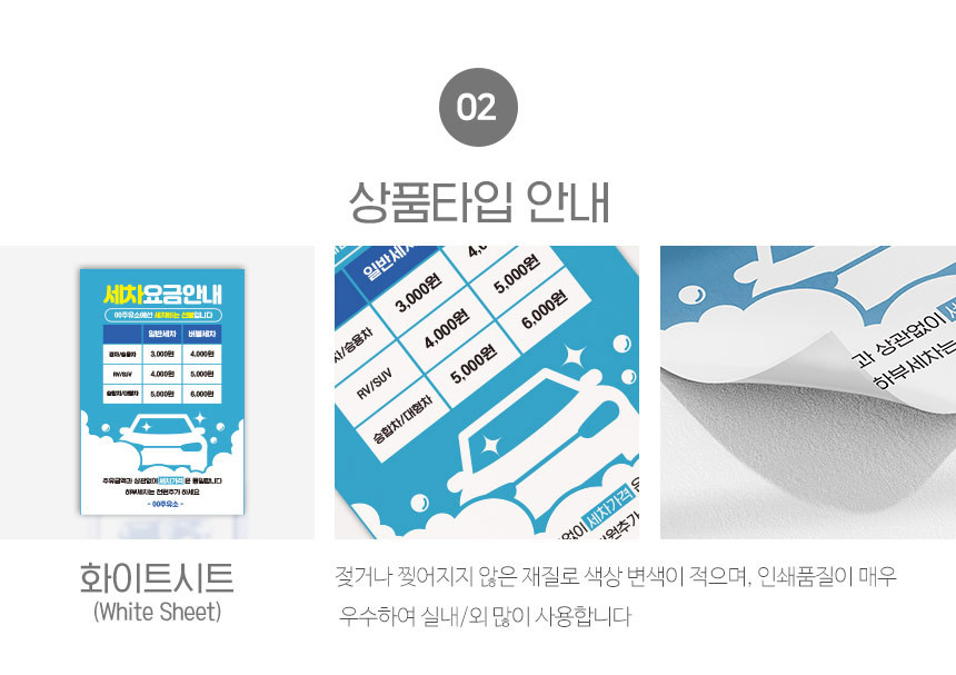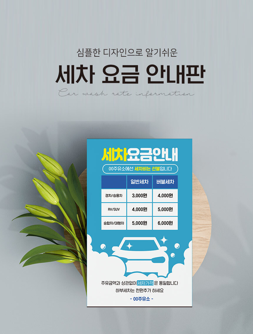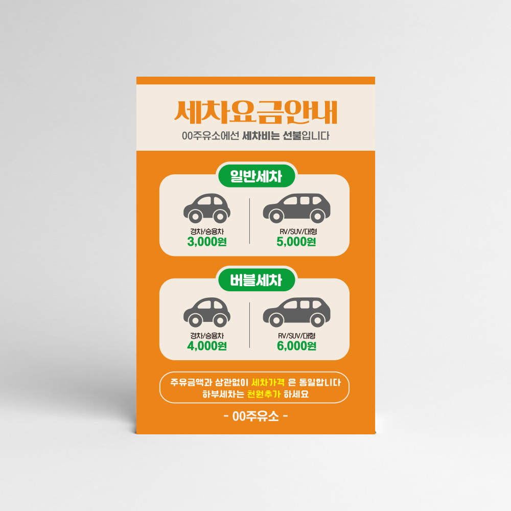 | 제품명 | 세차 요금 안내판 |