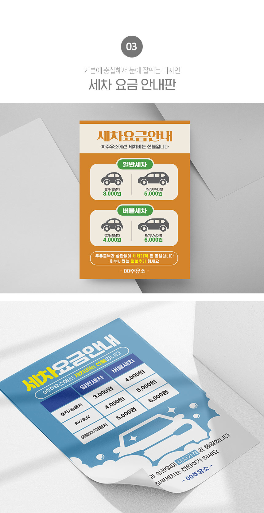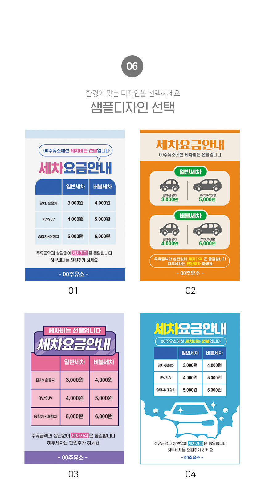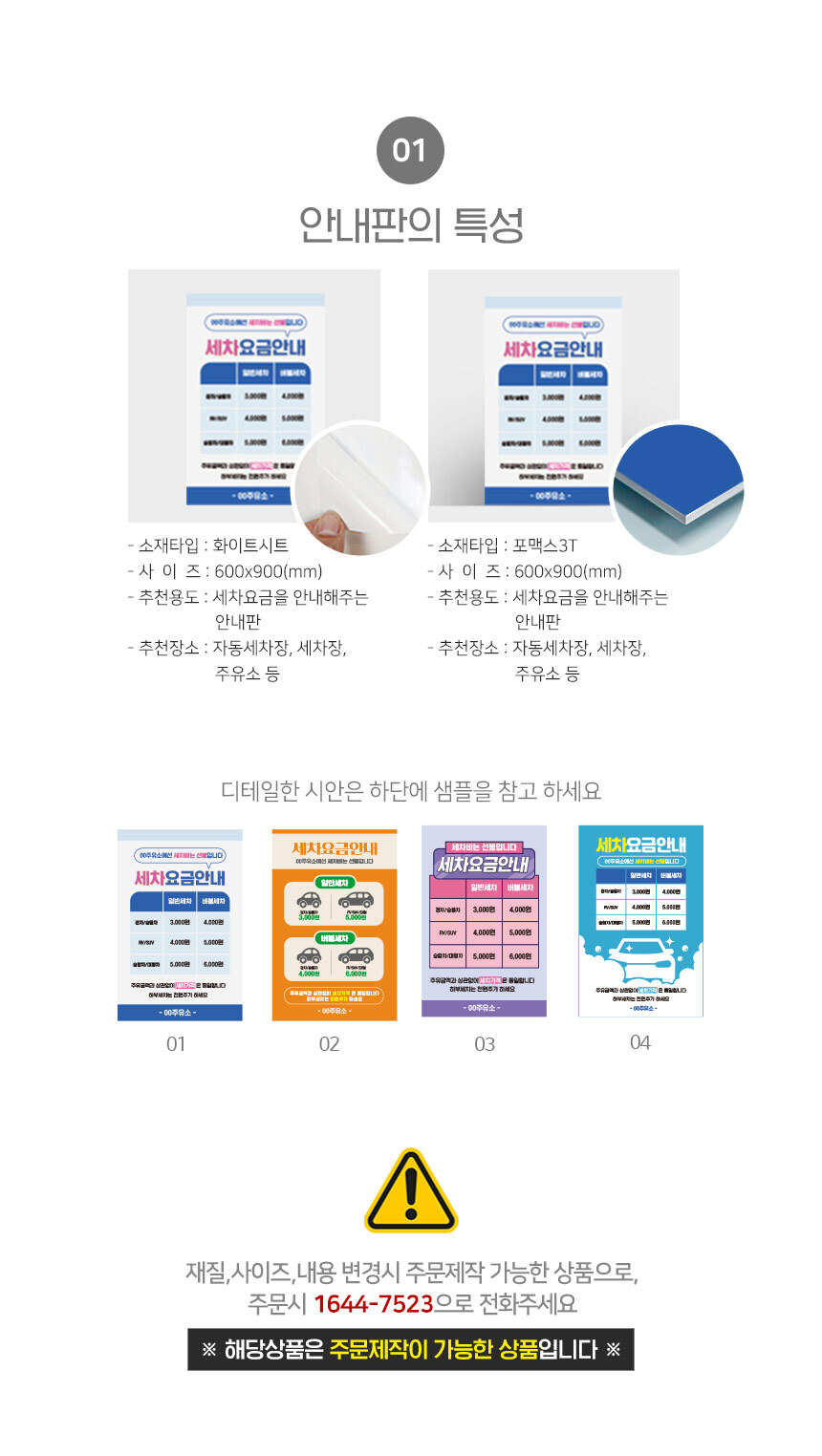 | 제품명 | 세차 요금 안내판 |