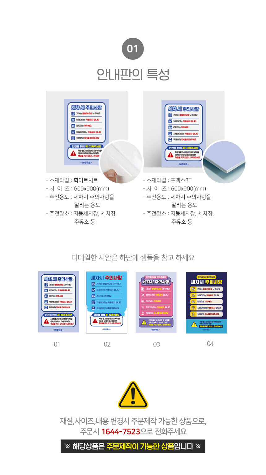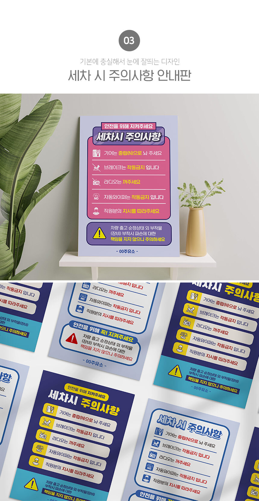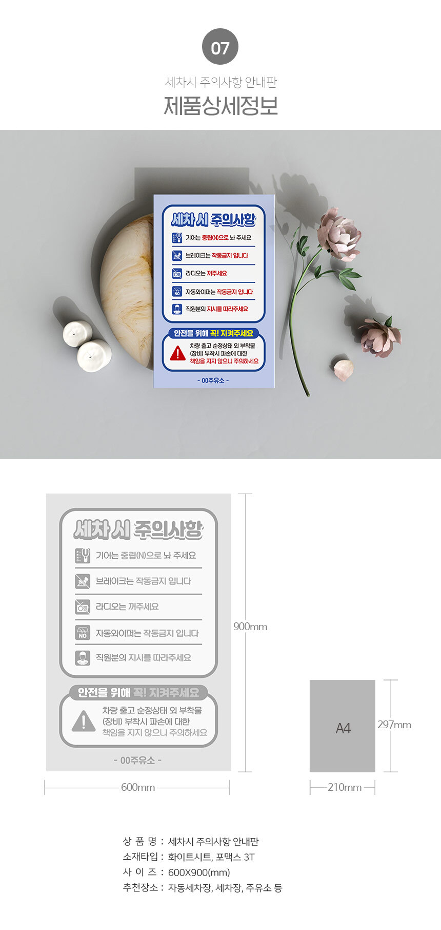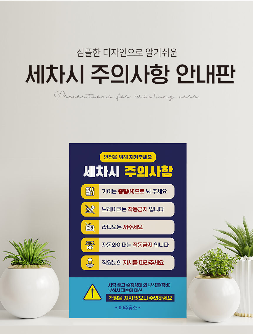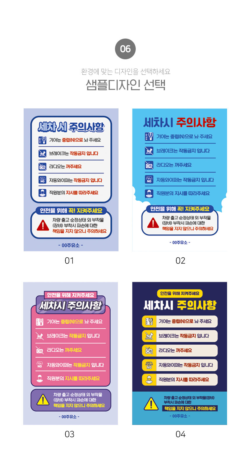 | 제품명 | 세차시 주의사항 안내판 |
