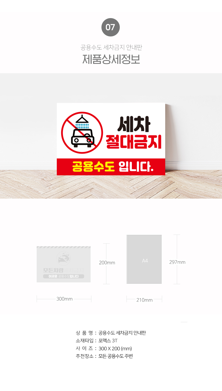 | 제품명 | 공용수도 세차금지 안내판 |