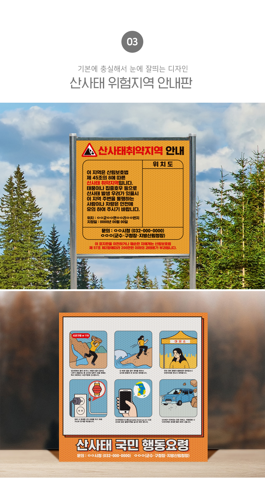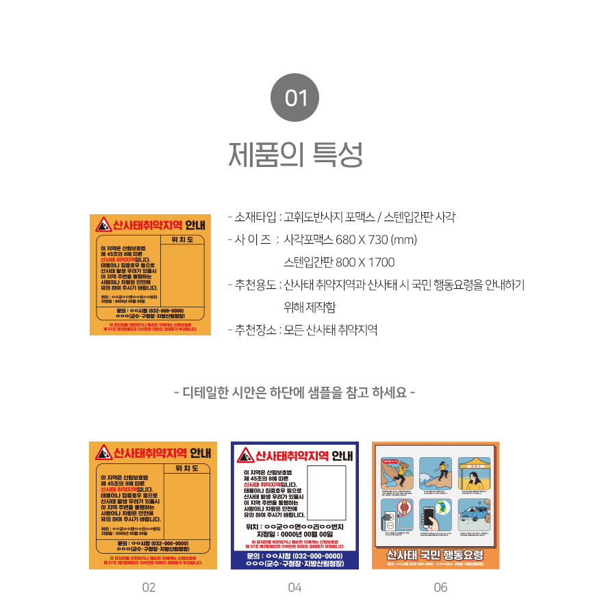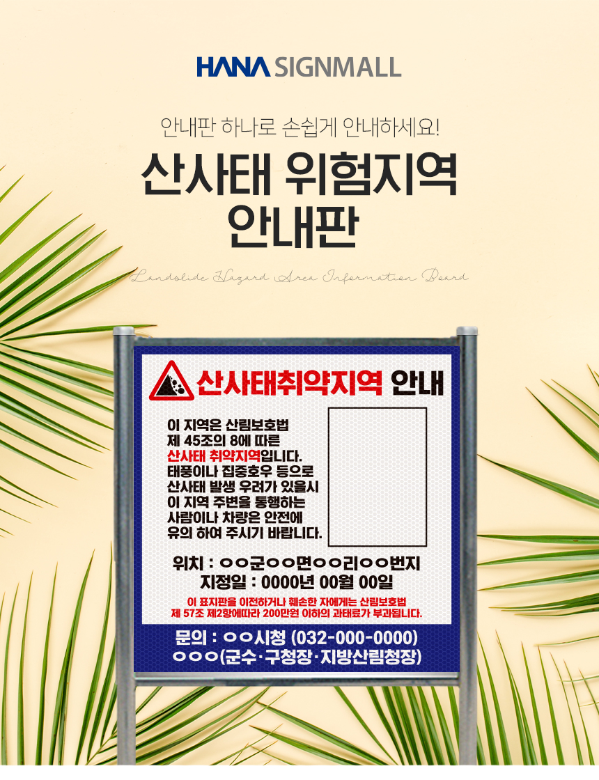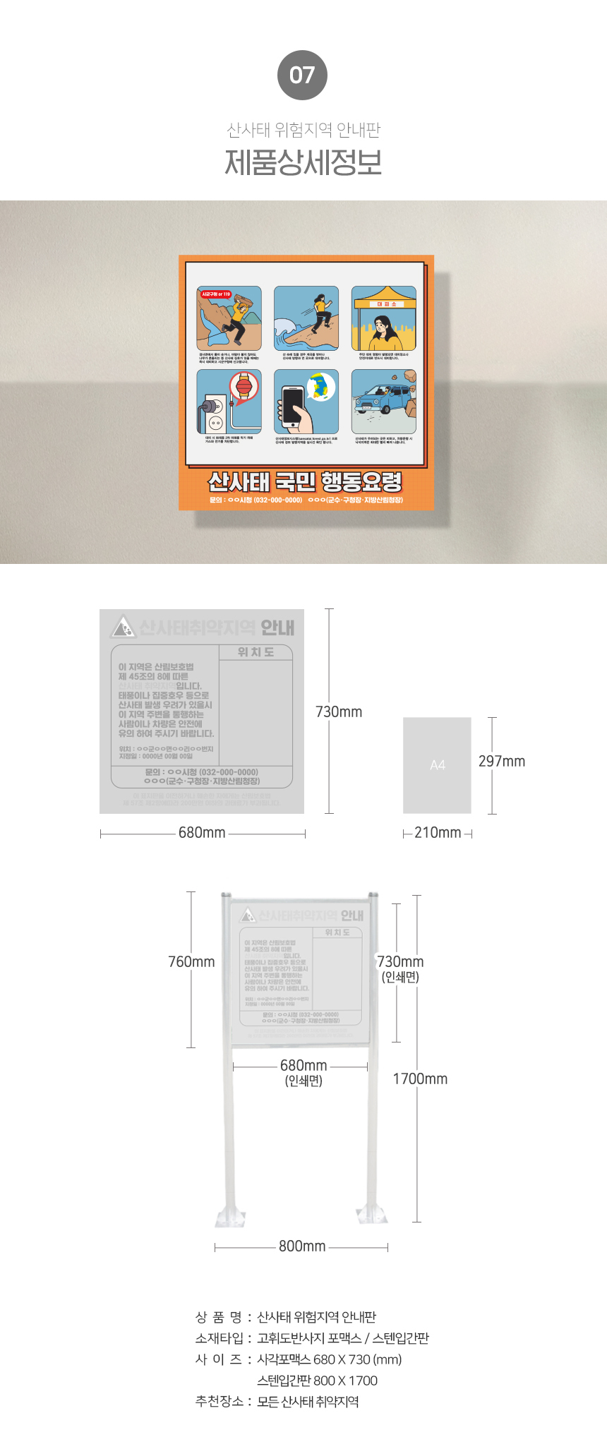 | 제품명 | 산사태 위험지역 안내판 인쇄물만 사각 타입 |