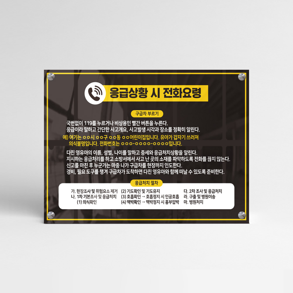 | 제품명 | 신고상담 전화요령 안내판 다보타입 |