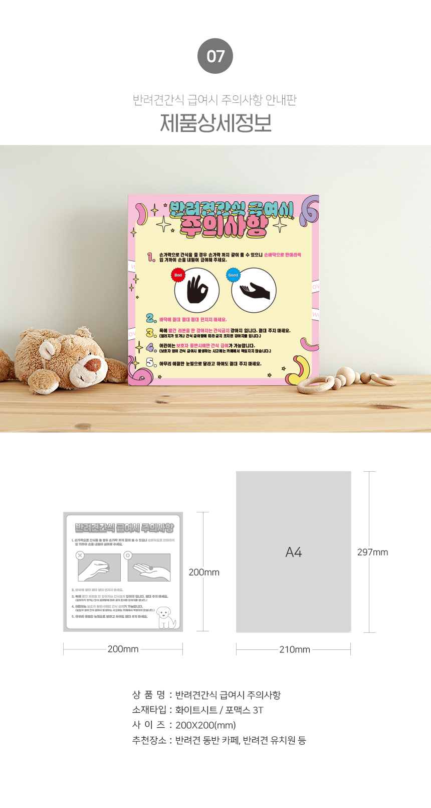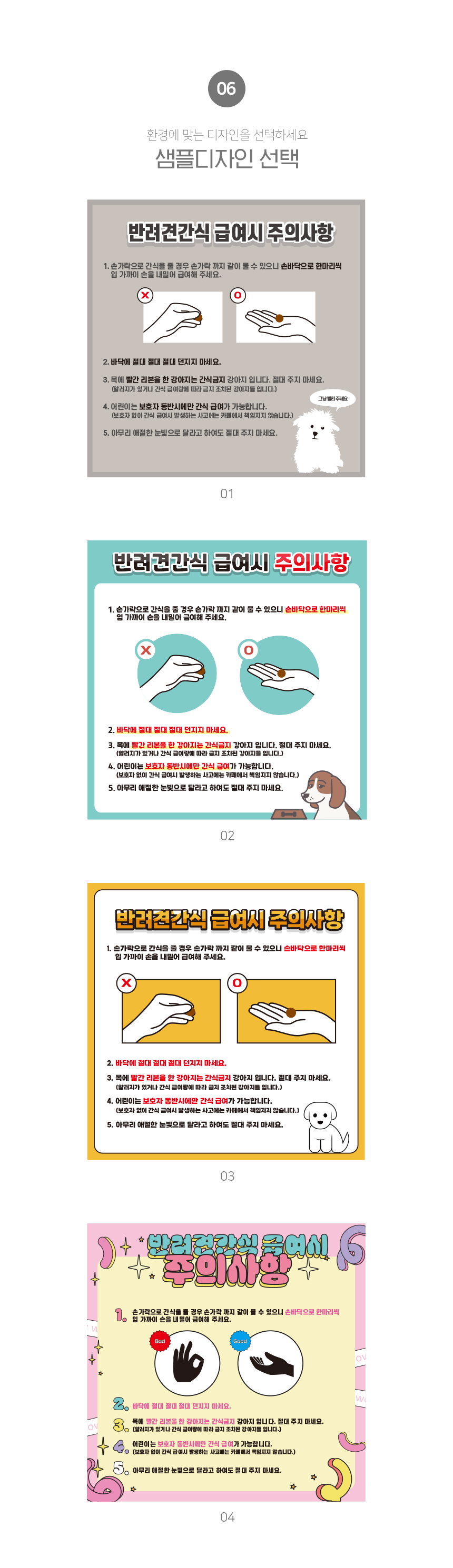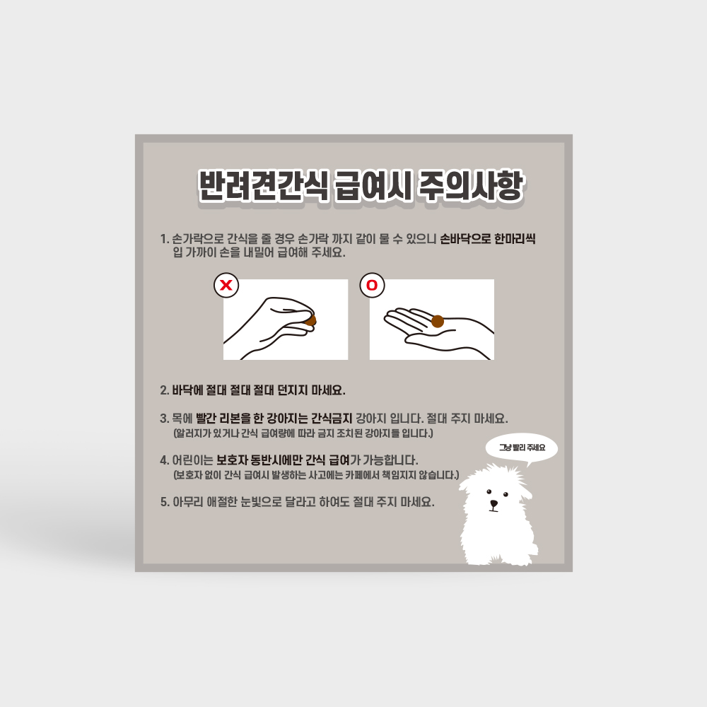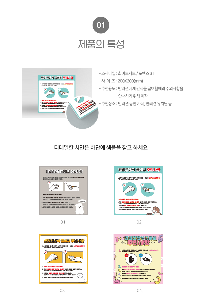 | 제품명 | 반려견간식 급여시 주의사항 정사각형 타입 |