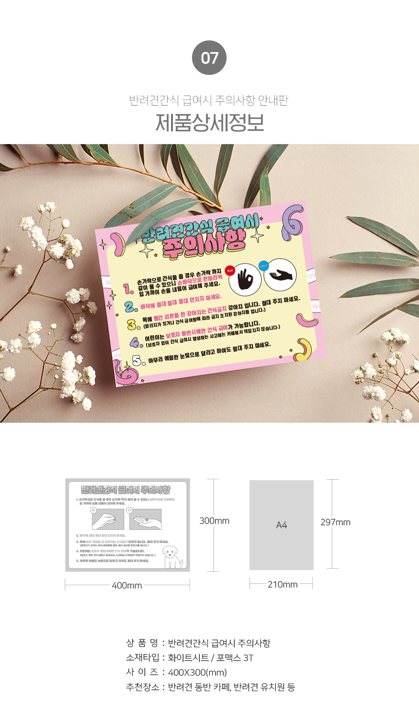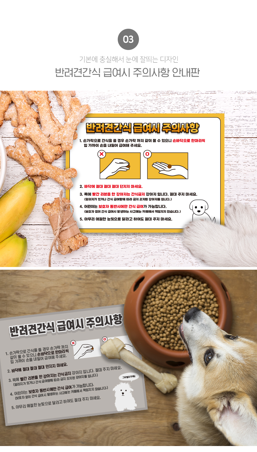 | 제품명 | 반려견간식 급여시 주의사항 직사각형 타입 |