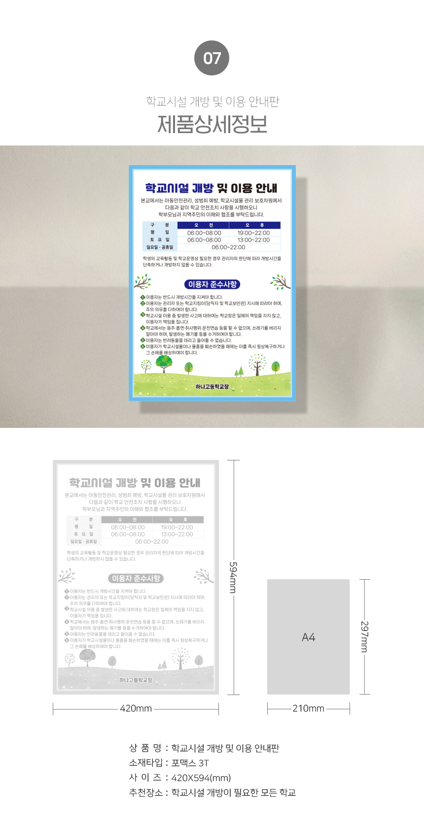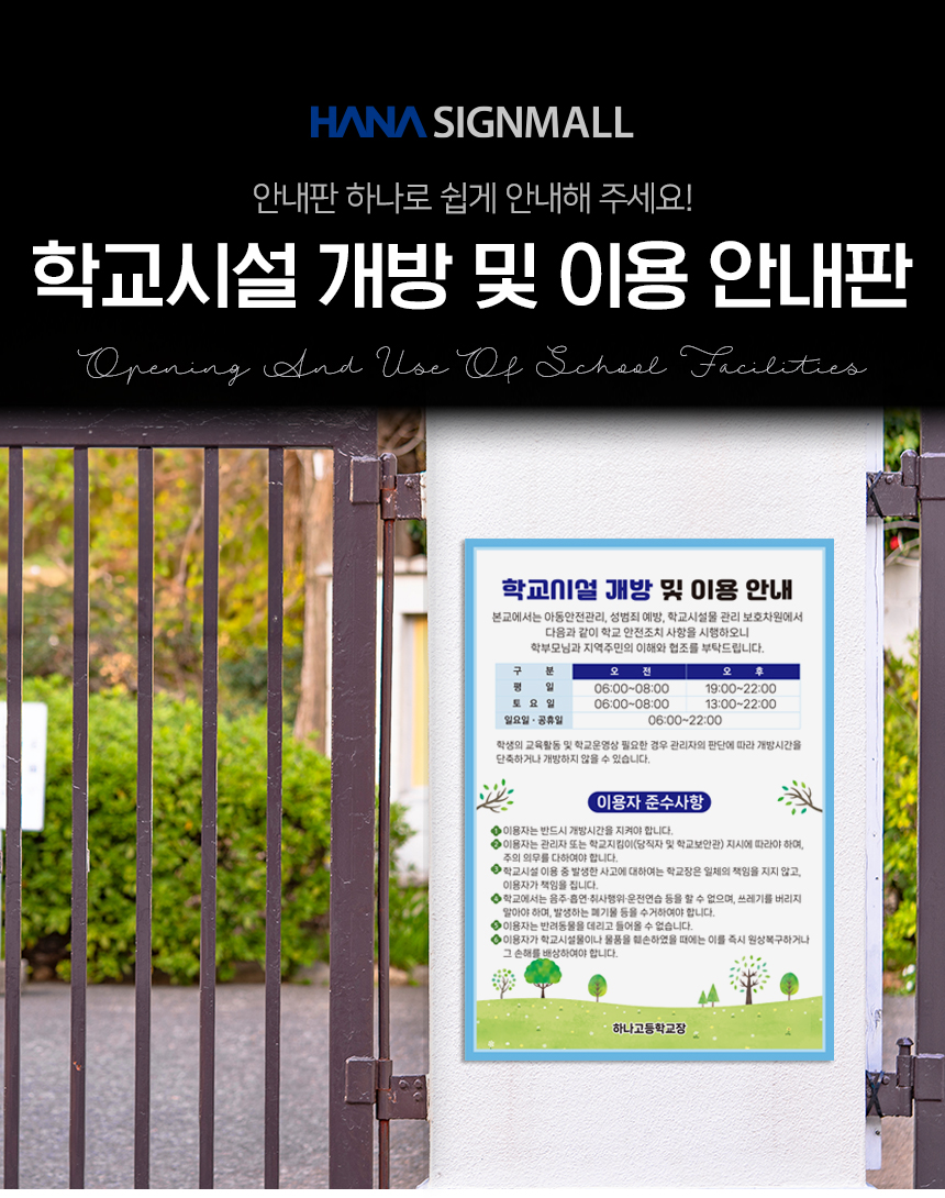 | 제품명 | 학교시설 개방 및 이용 안내판 |