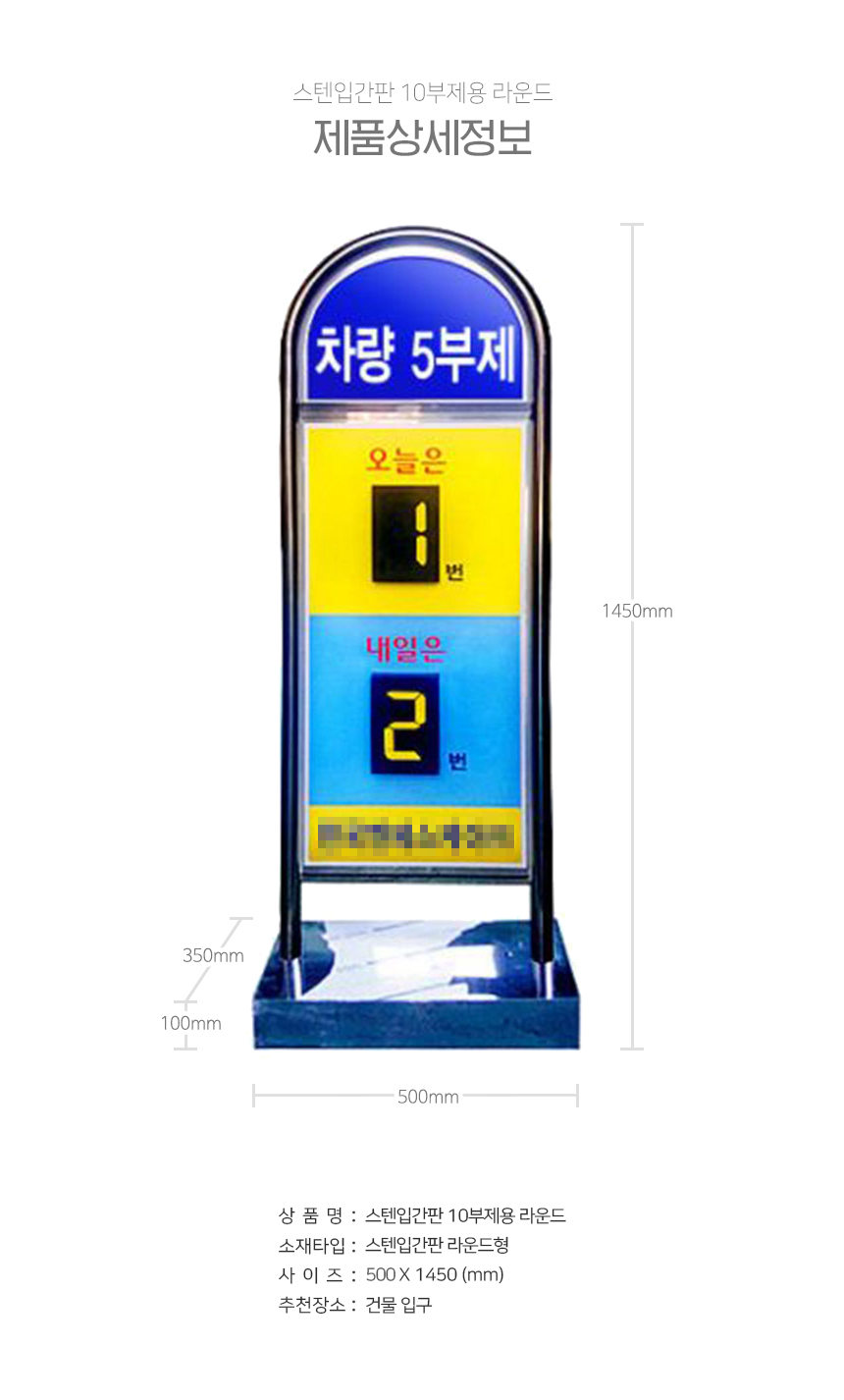 | 제품명 | 스텐입간판 10부제용 라운드 |