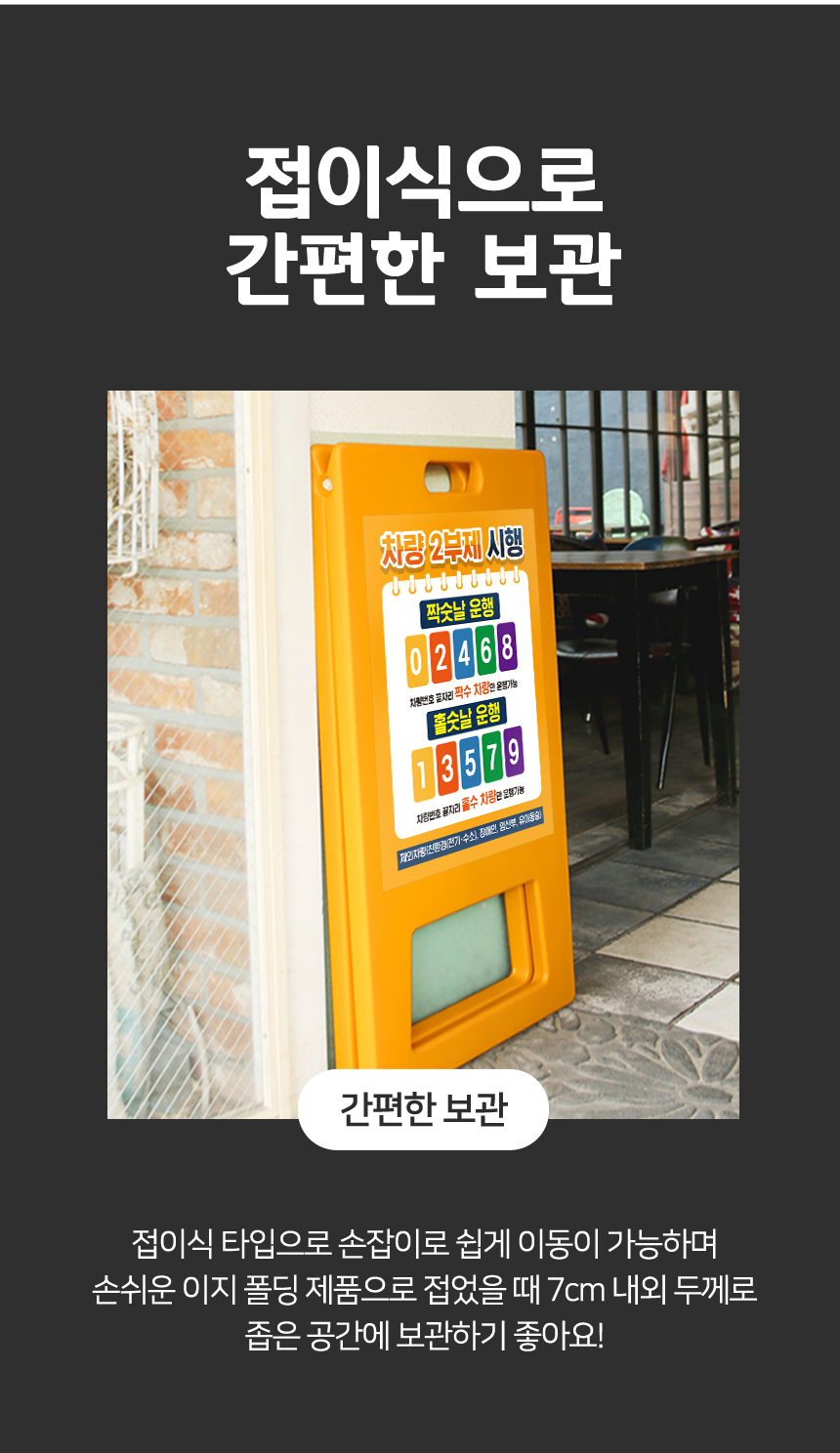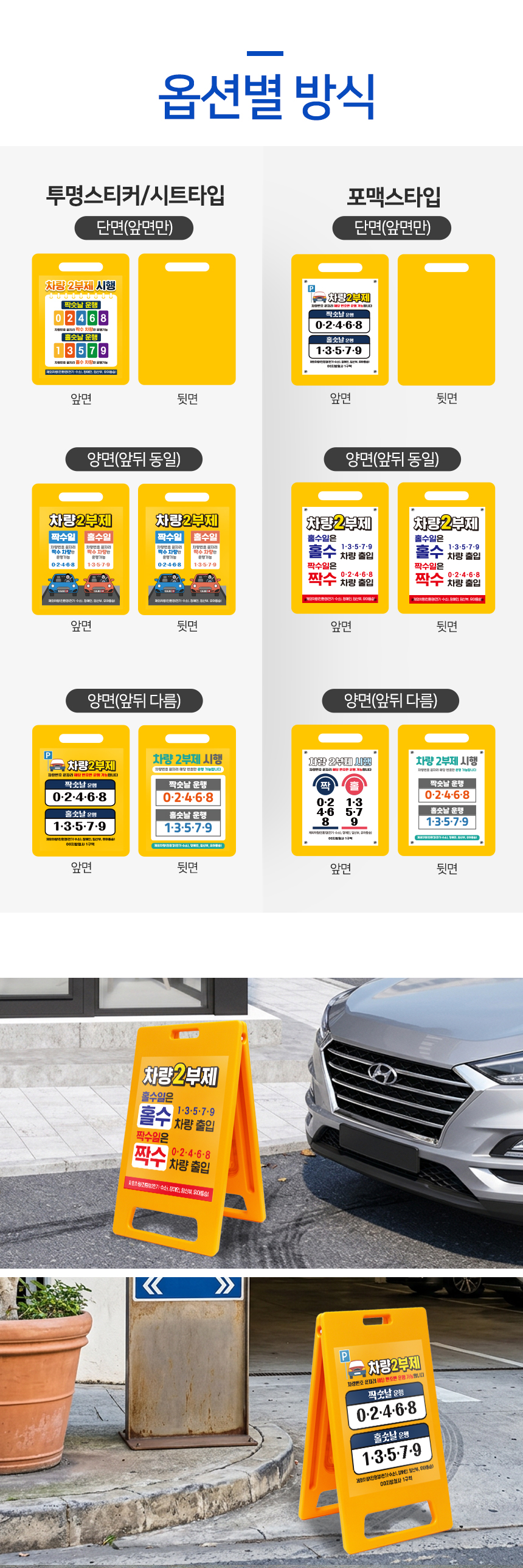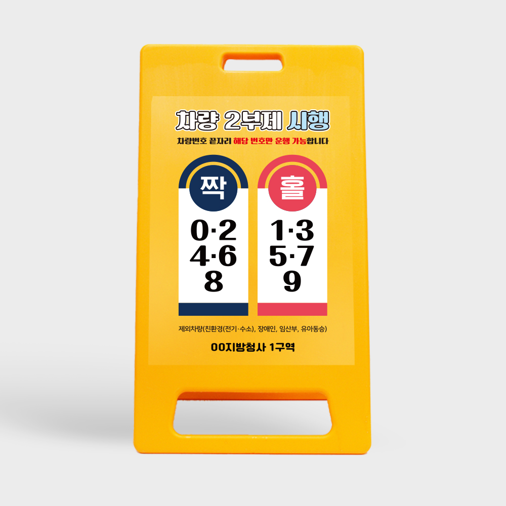 제품명 2부제 A형입간판 노랑 소형 대형 요일제