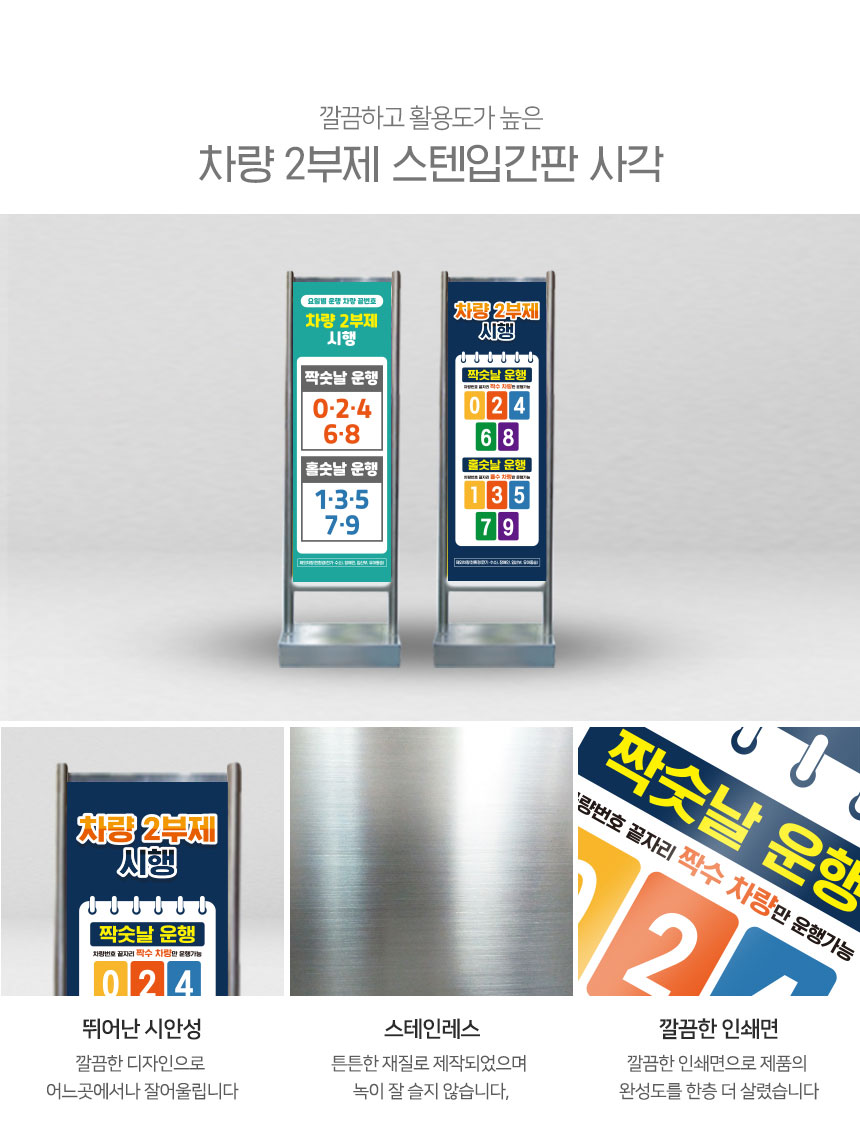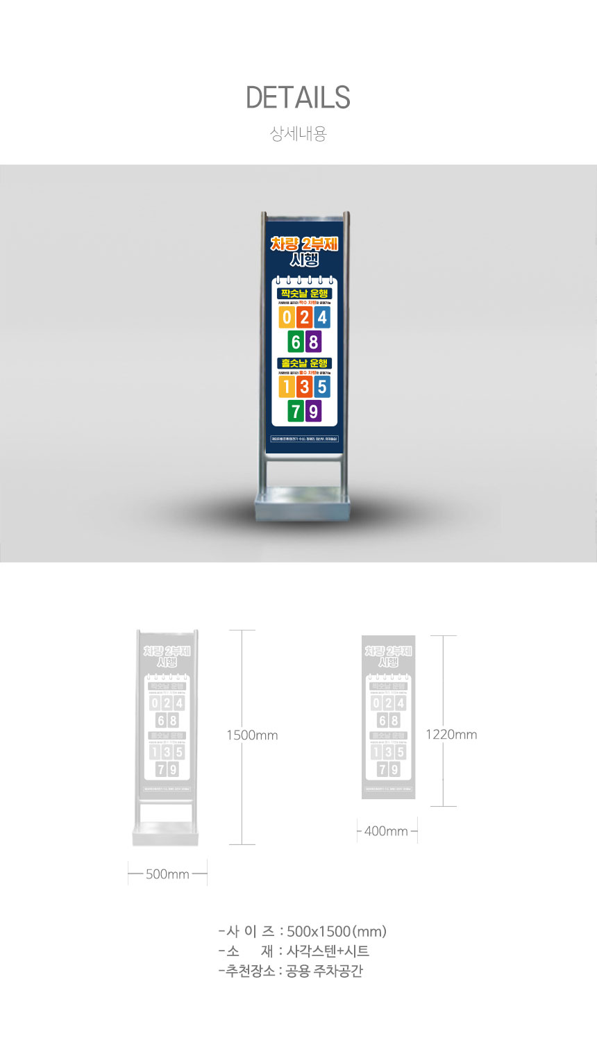 | 제품명 | 2부제 차량 요일제 스텐입간판 사각 |