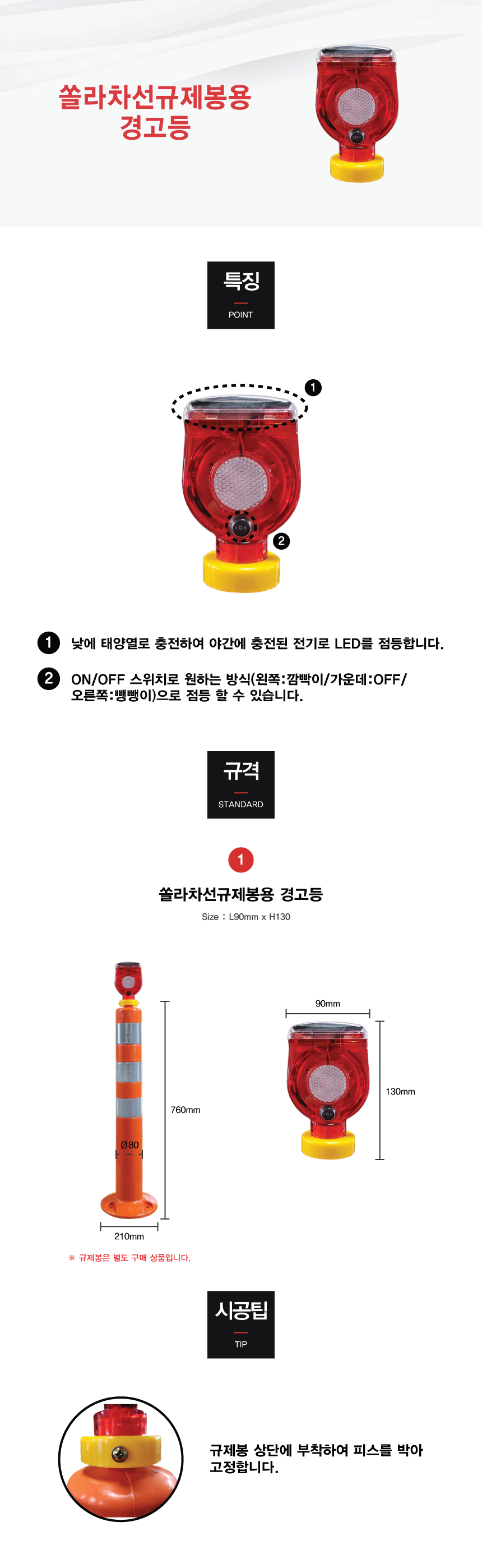 | 제품명 | 차선규제봉용 쏠라경고등 |