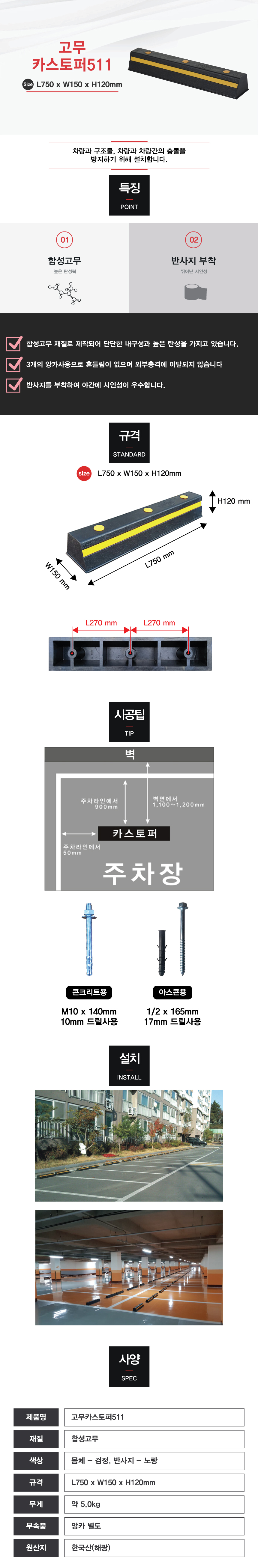 | 제품명 | 카스토퍼 합성고무 CAR STOPPER HA C511 |