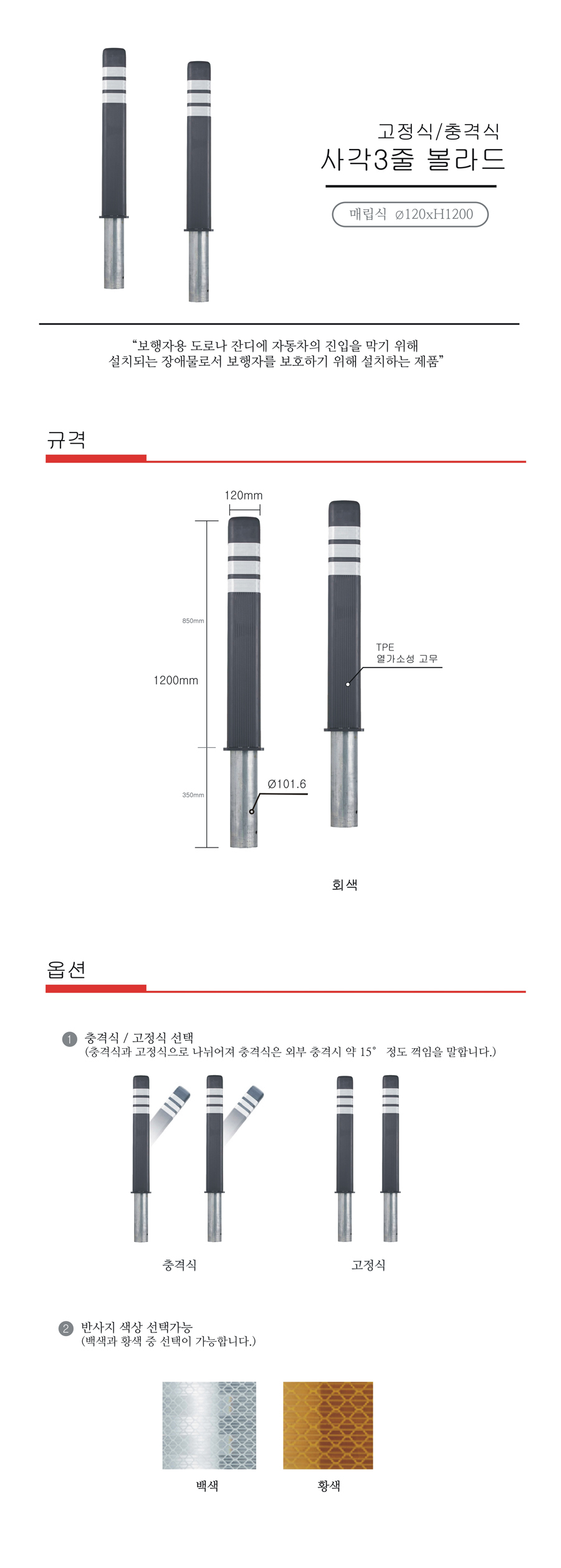 | 제품명 | 사각 3줄 볼라드 고정식 충격식 |