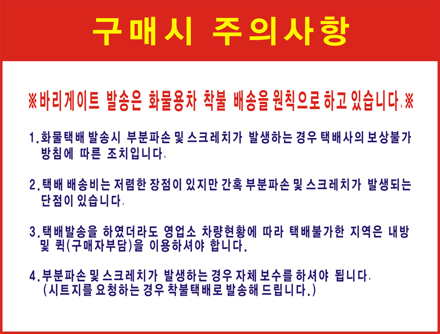 - 금속 구조물이나 대형 상품의 경우 택배가 여러개로 나뉘어 발송될 수 있습니다.