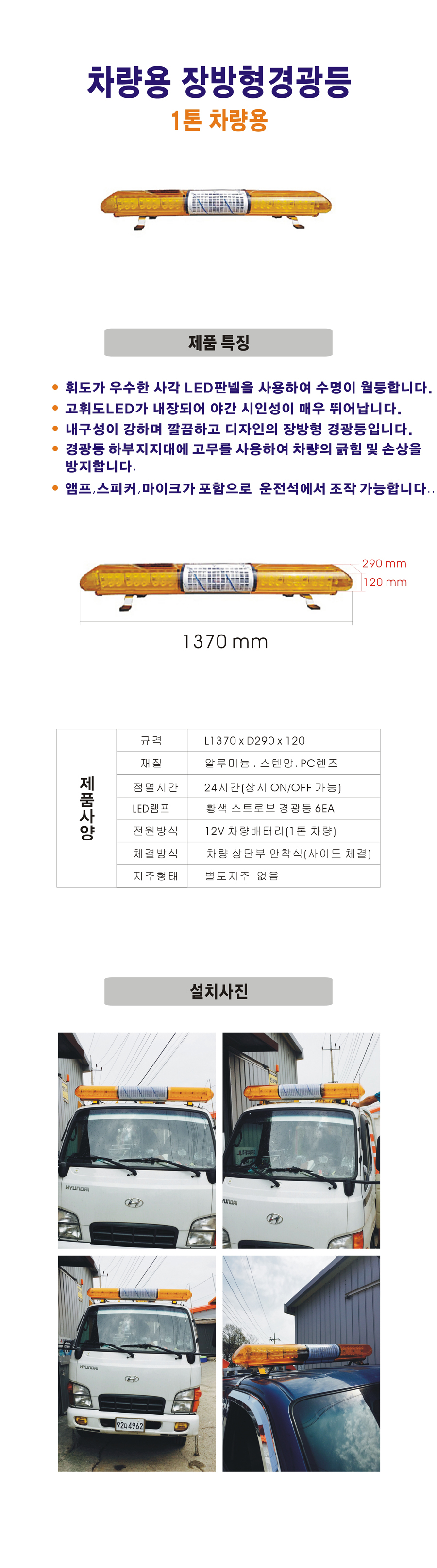 | 제품명 | 차량용 장방형경광등 |