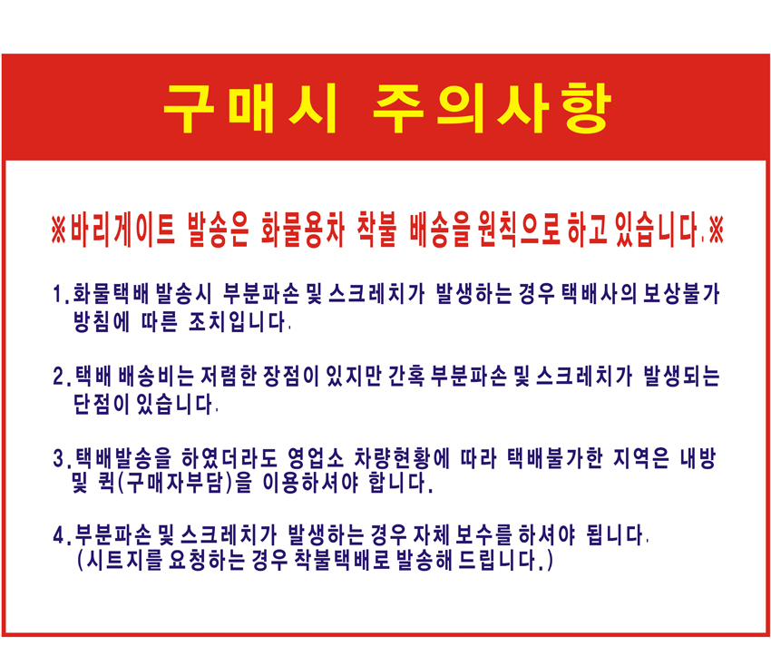 - 금속 구조물이나 대형 상품의 경우 택배가 여러개로 나뉘어 발송될 수 있습니다.