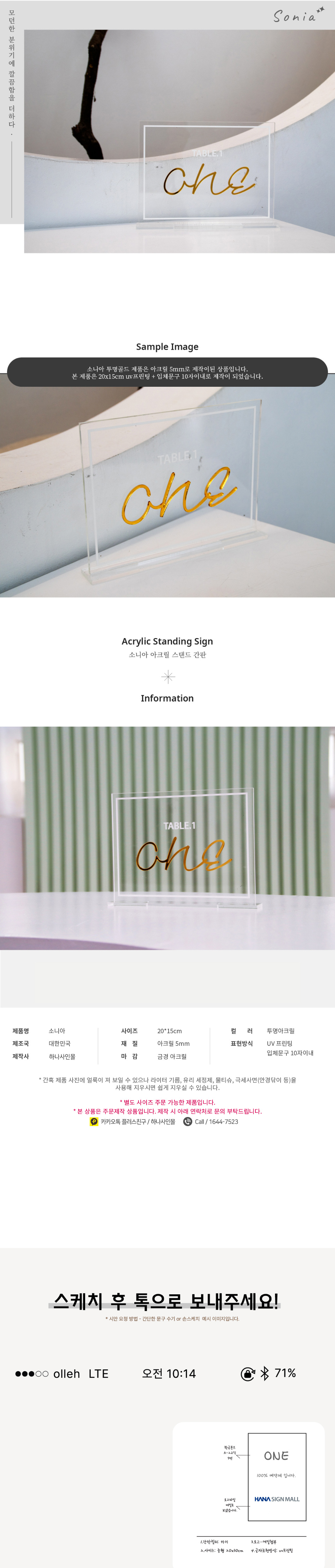 | 제품명 | 간판 소니아 투명 골드 아크릴 미니간판 스텐드 안내판 |