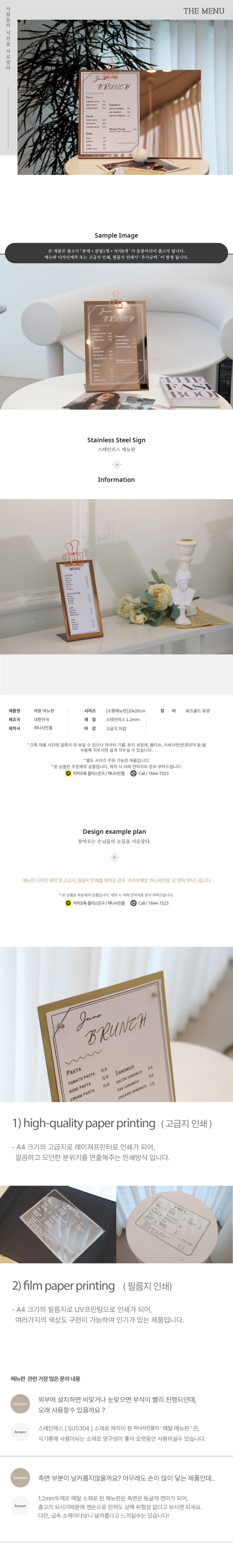 | 제품명 | 간판 A3 A4 A5 로즈골드 유광 메탈메뉴판 |