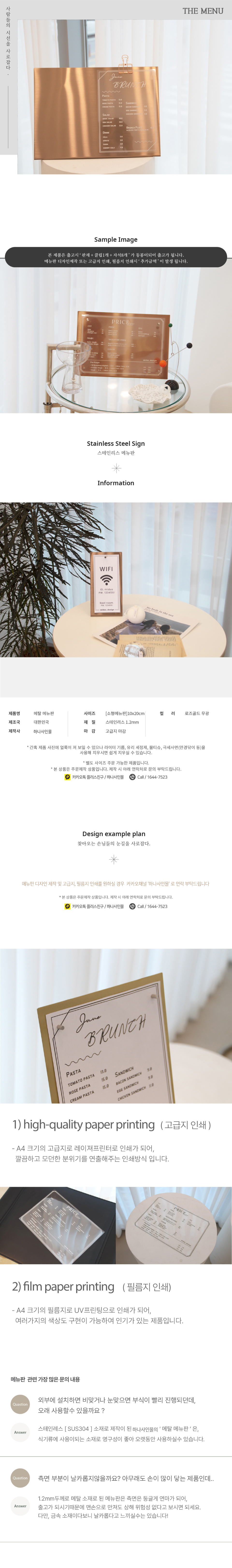 | 제품명 | 간판 A3 A4 A5 로즈골드 무광 메탈메뉴판 |