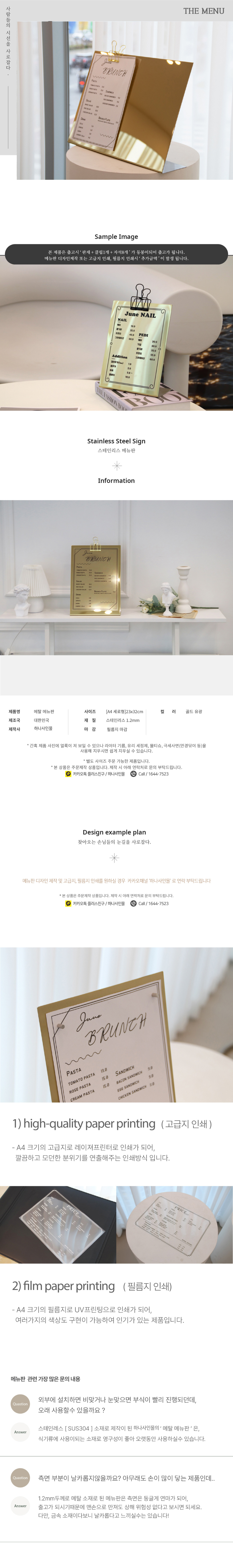 | 제품명 | 간판 A3 A4 A5 골드 유광 메탈메뉴판 |