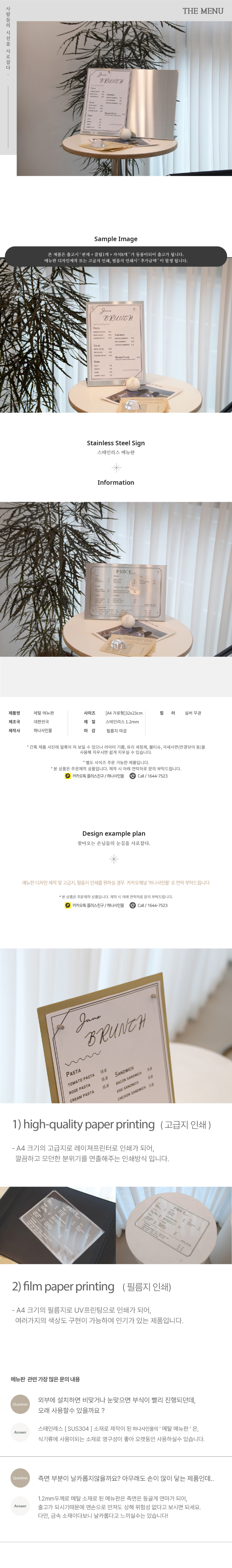 | 제품명 | 간판 A3 A4 A5 실버 무광 메탈메뉴판 |