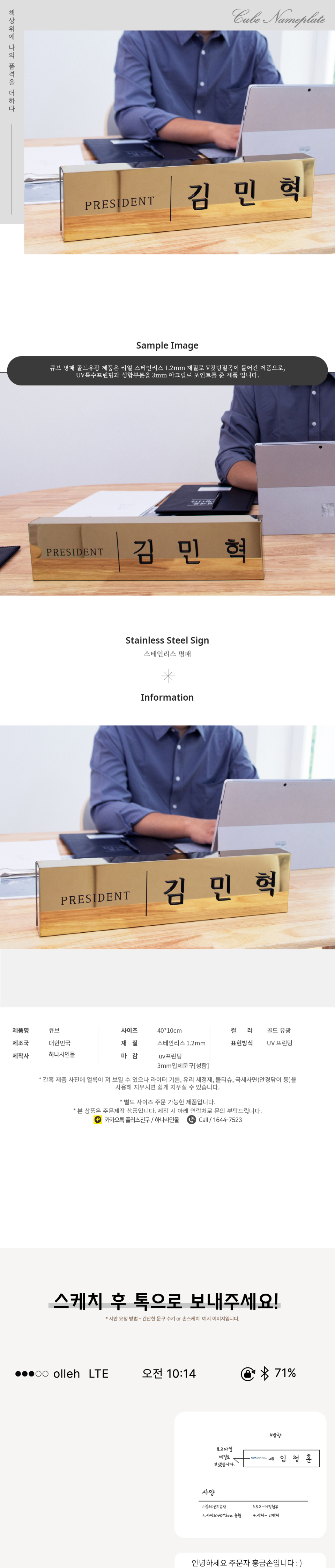 | 제품명 | 간판 큐브 골드유광 사각명패 |