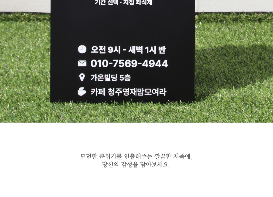 - 주문제작 상품의 경우 주문>디자인>시안 승인 후 에 제작이 진행되므로, 주문후 7~14일 (게시판제작시 최대3주) 정도 후에 받아보실 수 있습니다.