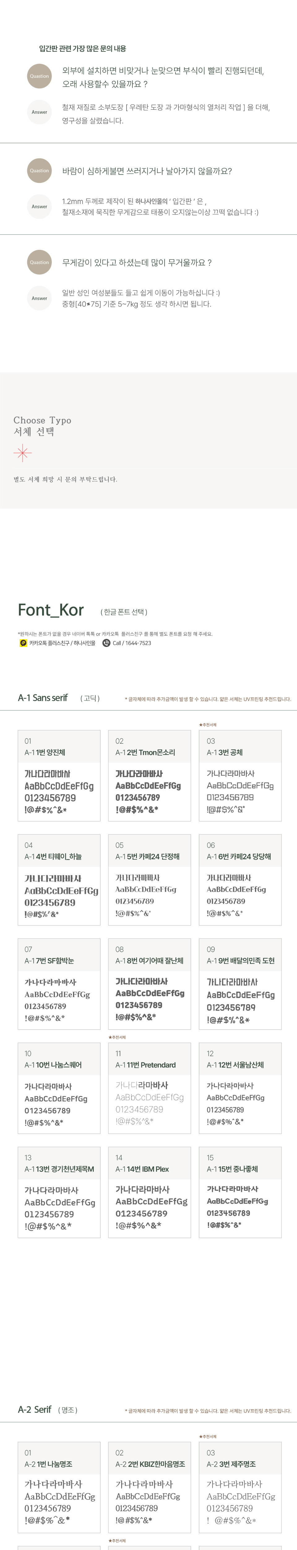 - 주문제작 상품의 경우 주문>디자인>시안 승인 후 에 제작이 진행되므로, 주문후 7~14일 (게시판제작시 최대3주) 정도 후에 받아보실 수 있습니다.