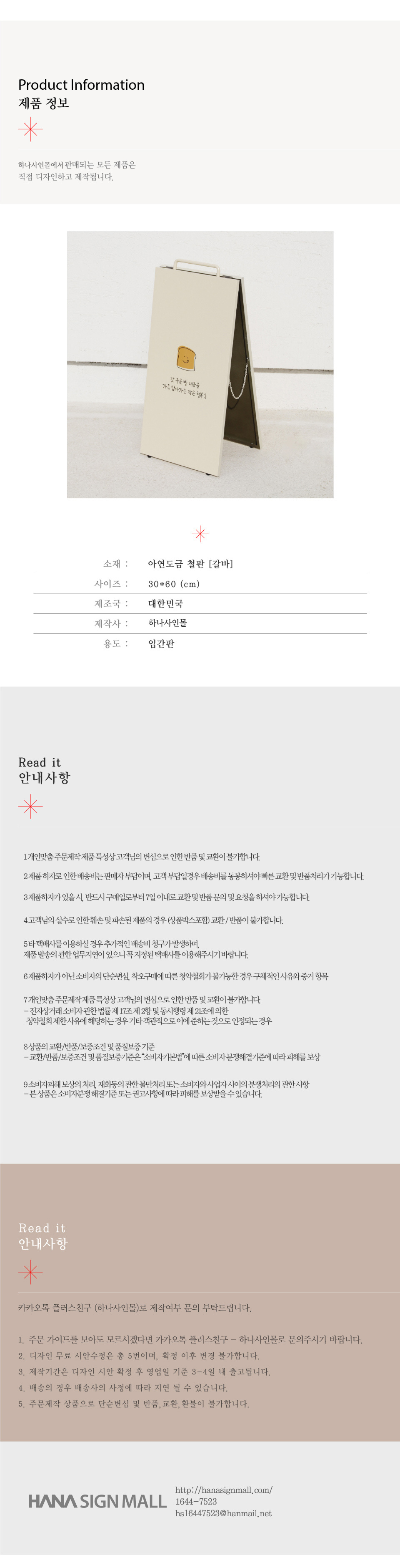 - A/S는 하나사인몰(1644-7523)로 문의주시기 바랍니다.