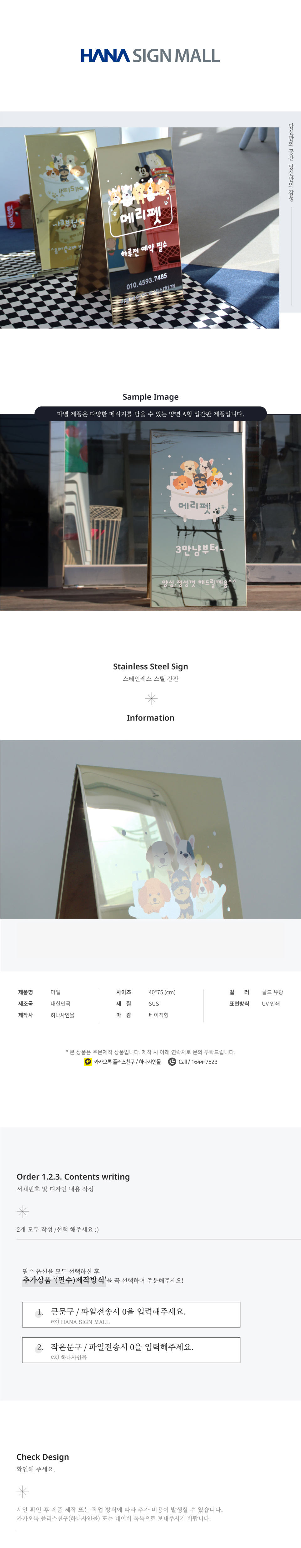 - 주문제작 상품의 경우 주문>디자인>시안 승인 후 에 제작이 진행되므로, 주문후 7~14일 (게시판제작시 최대3주) 정도 후에 받아보실 수 있습니다.