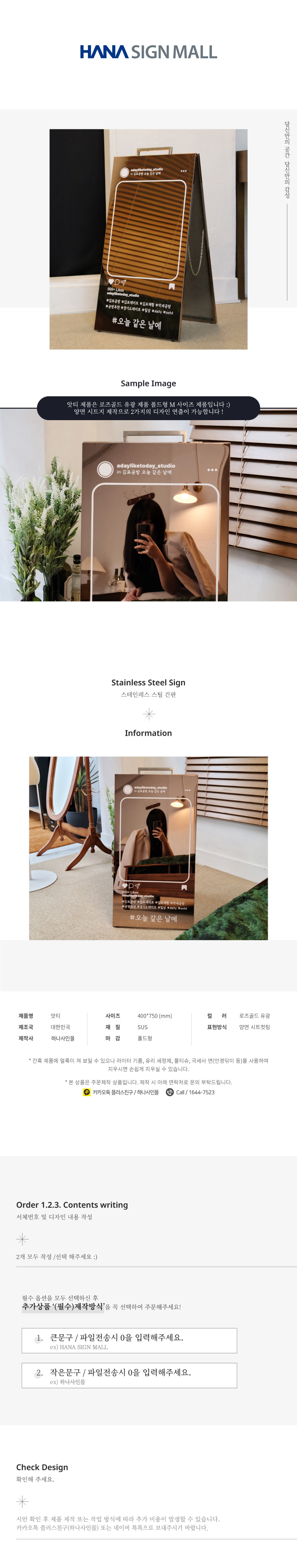 - A/S는 하나사인몰(1644-7523)로 문의주시기 바랍니다.