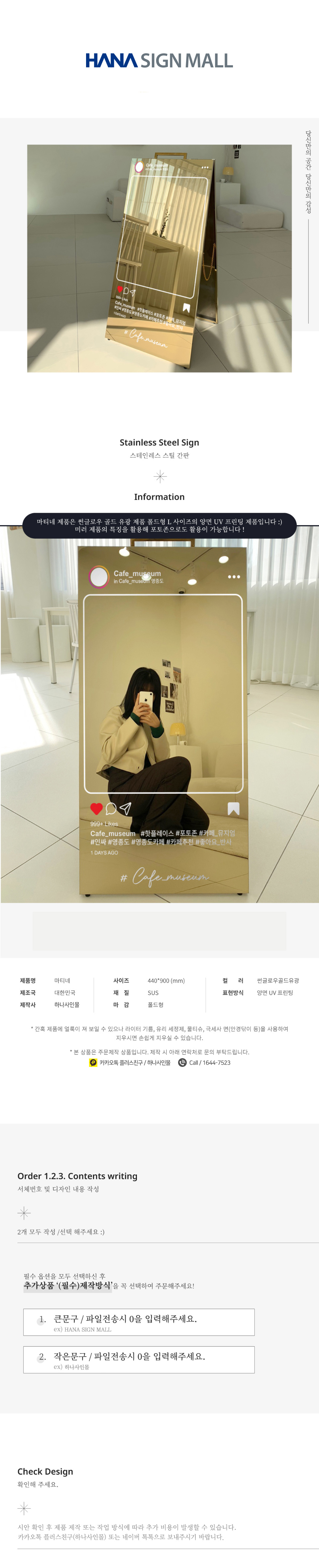 - 주문제작 상품의 경우 주문>디자인>시안 승인 후 에 제작이 진행되므로, 주문후 7~14일 (게시판제작시 최대3주) 정도 후에 받아보실 수 있습니다.