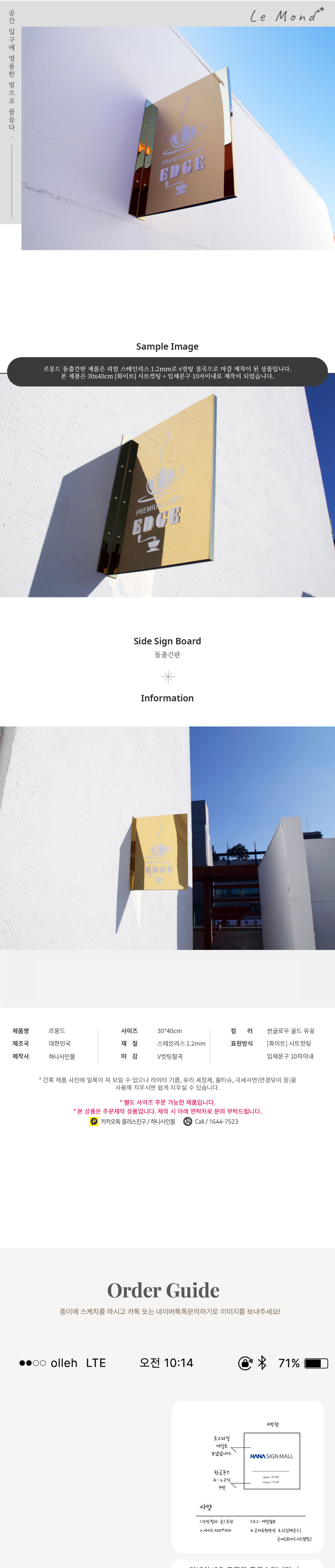 | 제품명 | 간판 르몽드 간판 골드 입간판 돌출간판 |