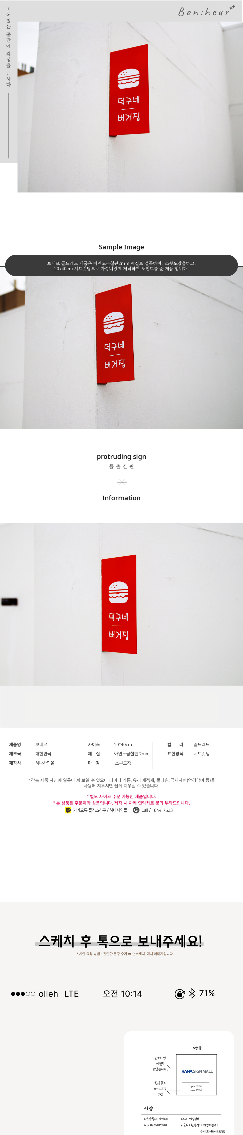 | 제품명 | 간판 보네르 골드레드 간판 철재 사각 입구 입간판 현판 명판 |