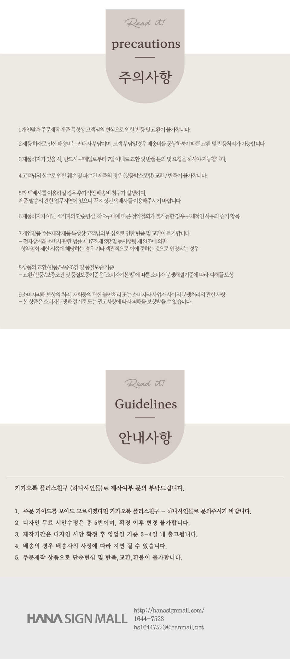 - A/S는 하나사인몰(1644-7523)로 문의주시기 바랍니다.