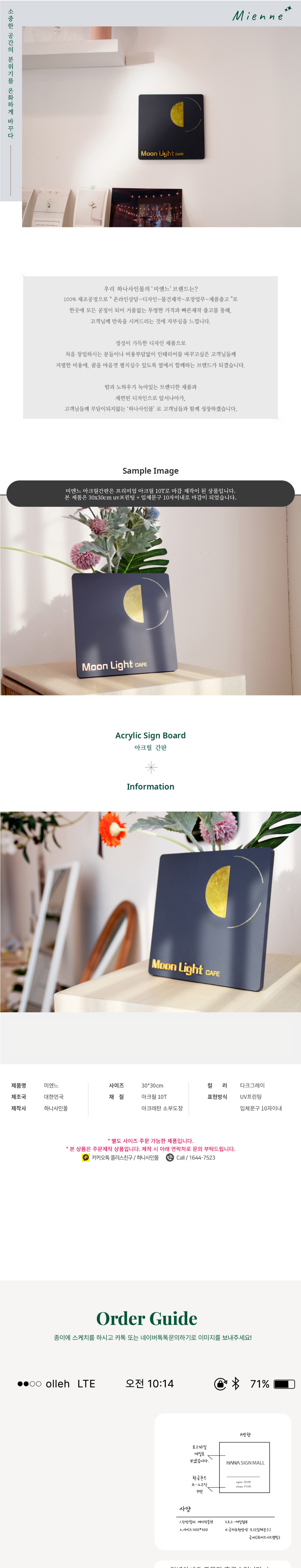 | 제품명 | 간판 미엔느 카페간판 아크릴현판 명판 현판제작 |