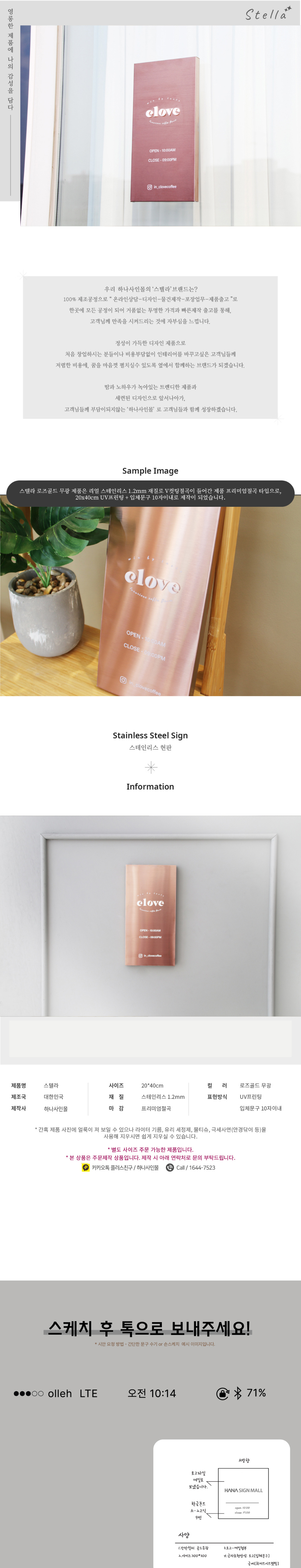 | 제품명 | 간판 스텔라 로즈골드무광 스텐 사무실 회사 메탈 현판 간판 명판 |