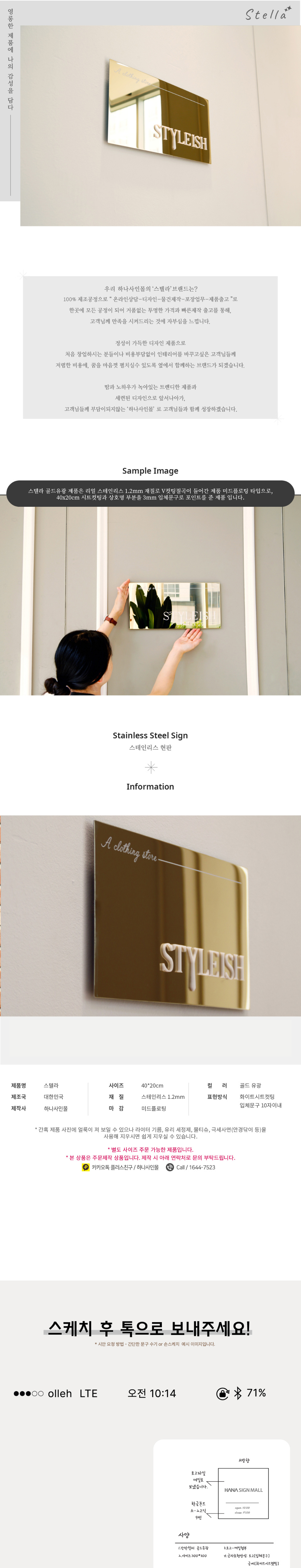 | 제품명 | 간판 스텔라 골드유광 스텐현판 메탈명판 미니간판 디자인간판 |