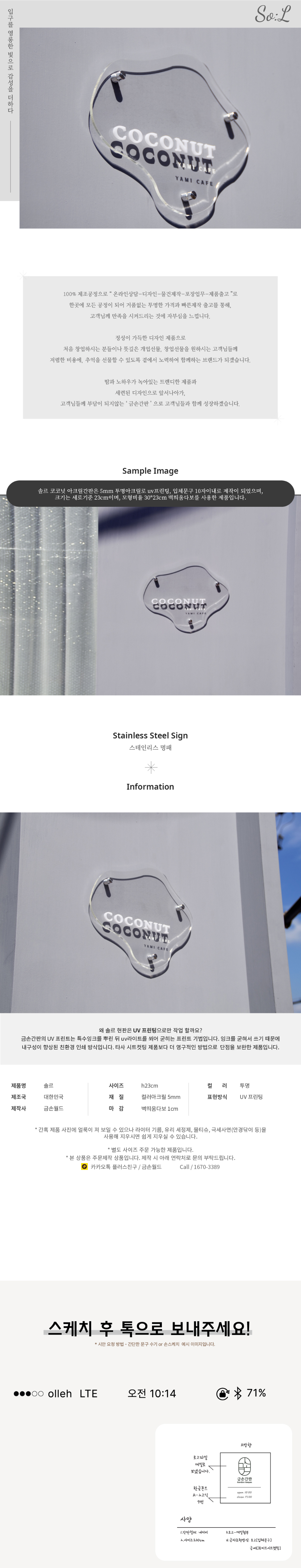 | 제품명 | 간판 솔르 코코넛 아크릴간판 미니간판 디저트 미용실 간판 현판 |