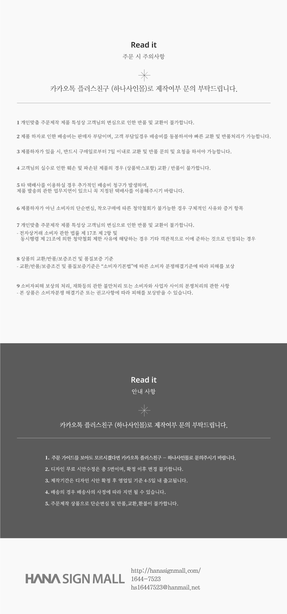 - A/S는 하나사인몰(1644-7523)로 문의주시기 바랍니다.