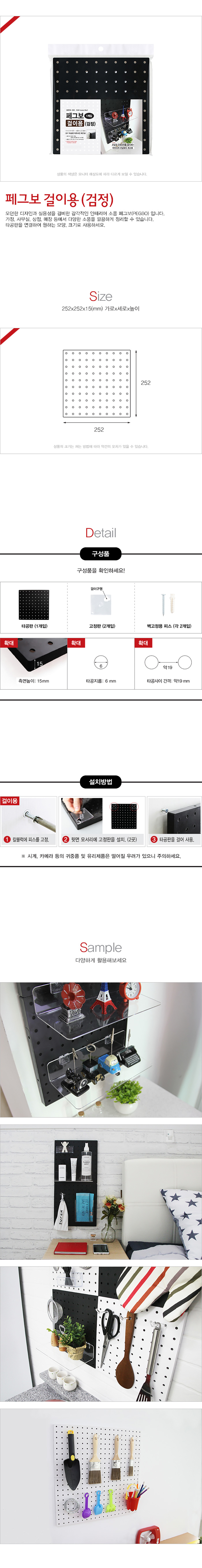 | 제품명 | 페그보252 걸이용 검정 타공판 1개입 고정판 2개입 피스 2개입 |