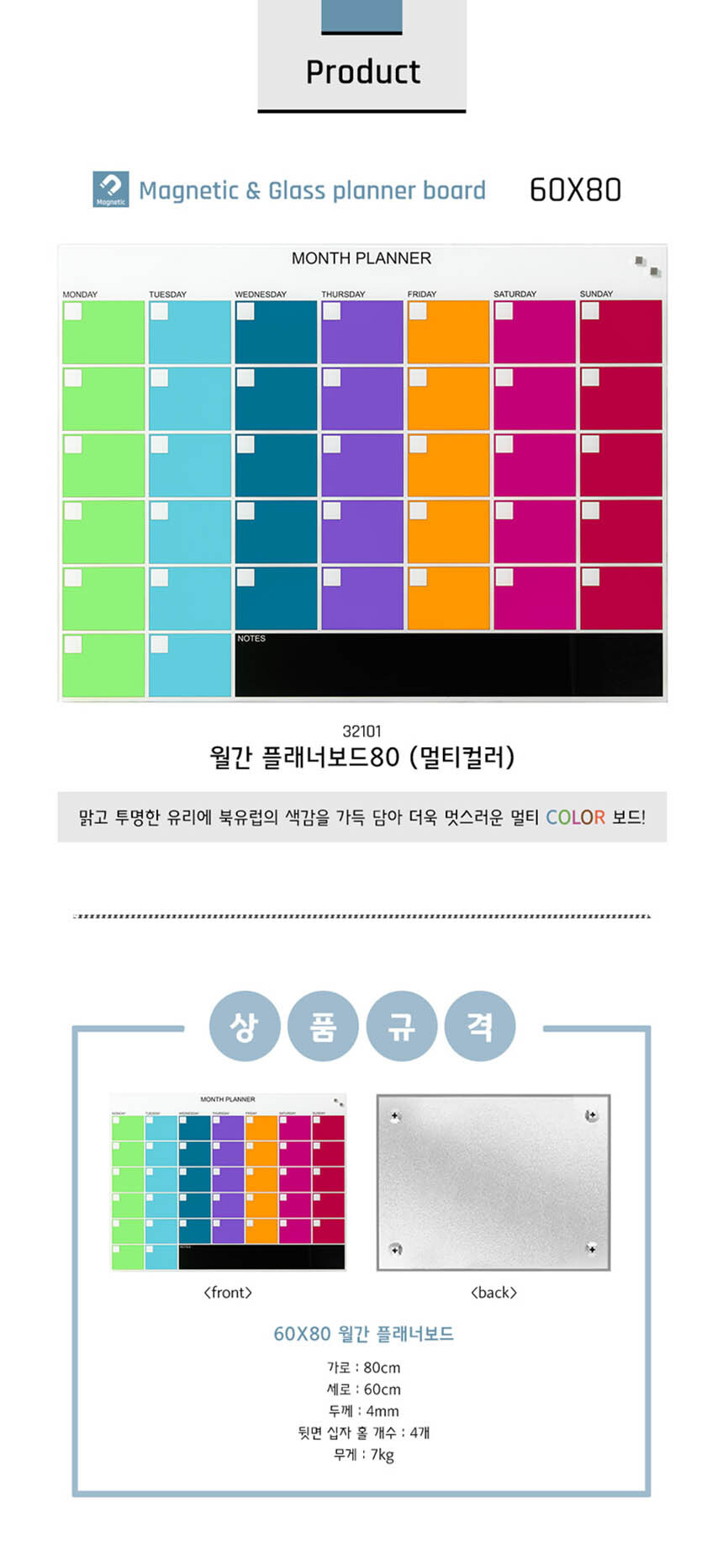 | 제품명 | 나가월간플래너보드80 멀티컬러 플래너보드 1개입 보드마카 2개입 마카용 링 2개입 강자석 2개입 설치부품 포함 |