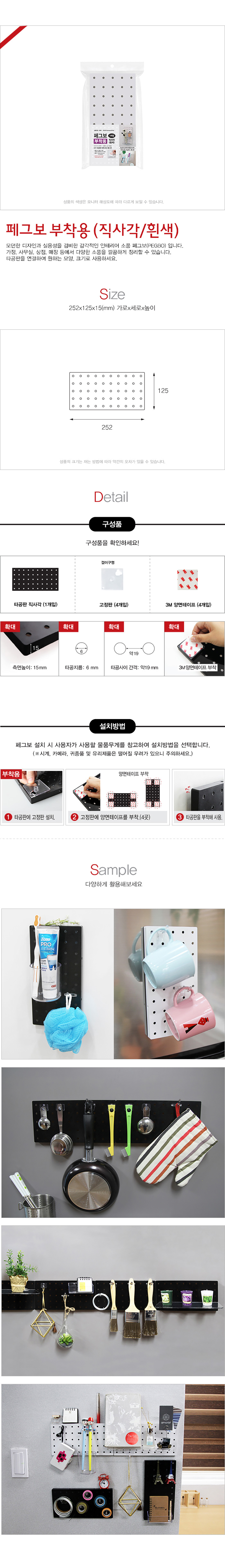 | 제품명 | 페그보125 부착용 흰색 타공판 1개입 고정판 4개입 3M양면테이프 4개입 |