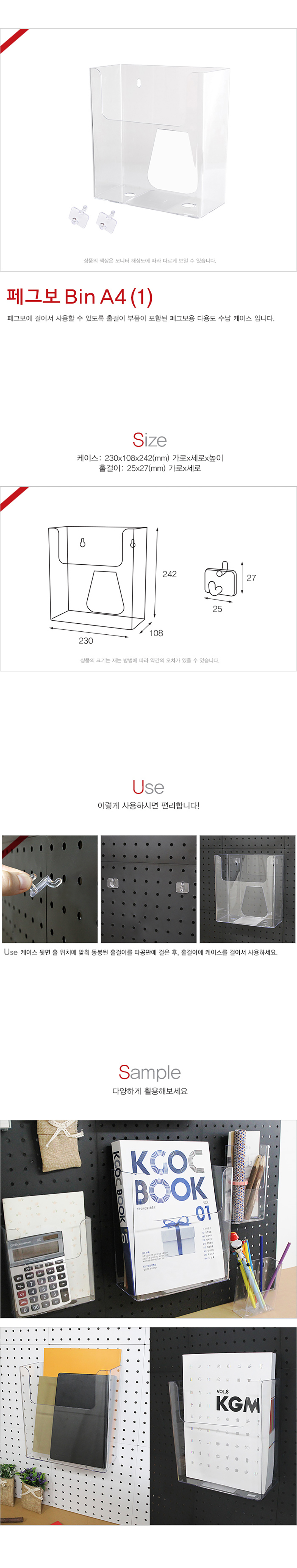 | 제품명 | 페그보Bin A4 1 1개입 홀걸이2개입포함 |