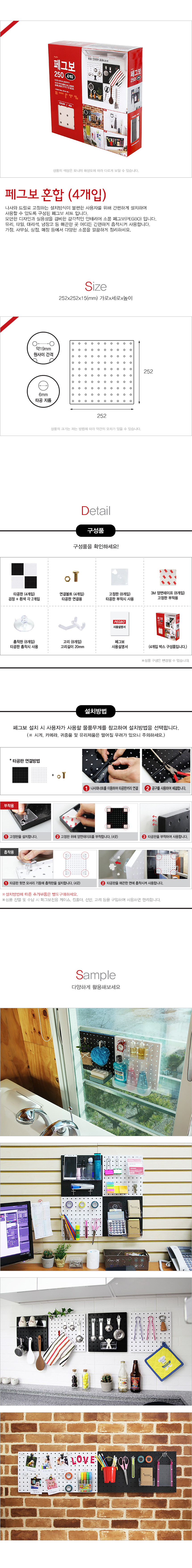 | 제품명 | 페그보252 혼합 타공판4개입 검정 흰색각2개입 연결볼트4개입 고정판 3M양면테이프 흡착판 걸이용고리20 각 8개입 |