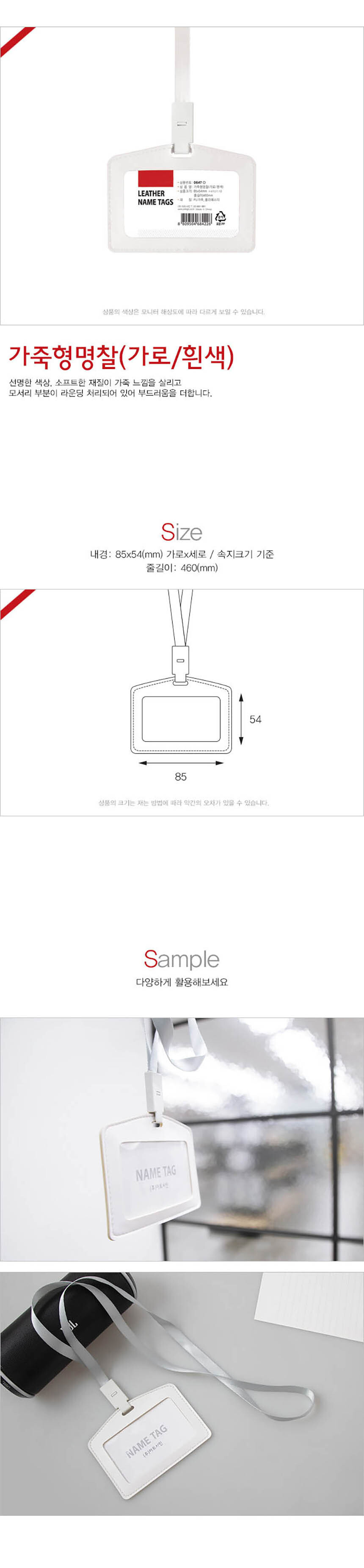 | 제품명 | 가죽형명찰 가로 흰색 1개입 목걸이줄 포함 |