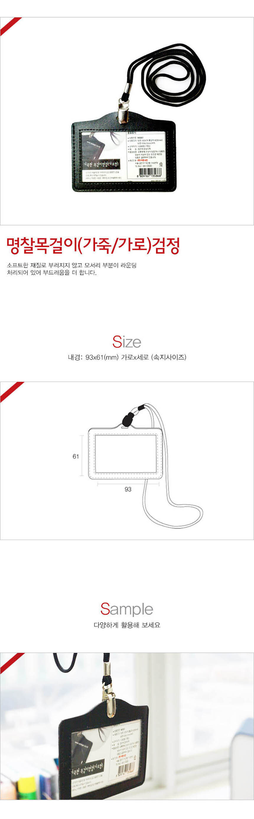 | 제품명 | 가죽형명찰 가로 검정 1개입 목걸이줄 포함 |